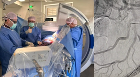 Erster minimalinvasiver Eingriff mit individuell gefertigter fenestrierter Aortenprothese
