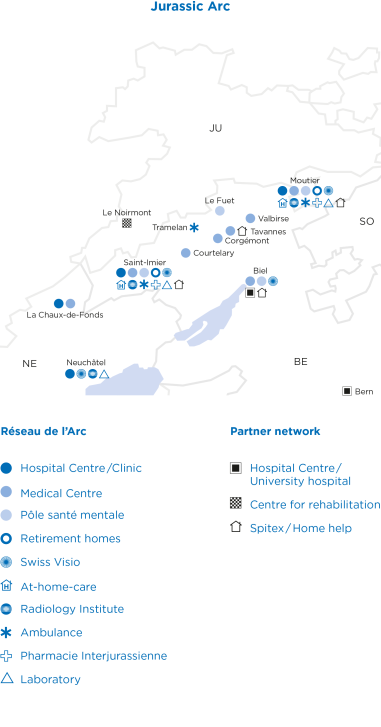 The Réseau de l'Arc, Switzerland's first integrated healthcare organisation, has set new standards in healthcare with its innovative approach. The organisation includes the former Hôpital du Jura bernois with its sites in Moutier and Saint-Imier, several Medicentres and an extensive psychiatric network. By closely linking all actors in the healthcare system, it has been possible to ensure high-quality and cost-efficient healthcare.